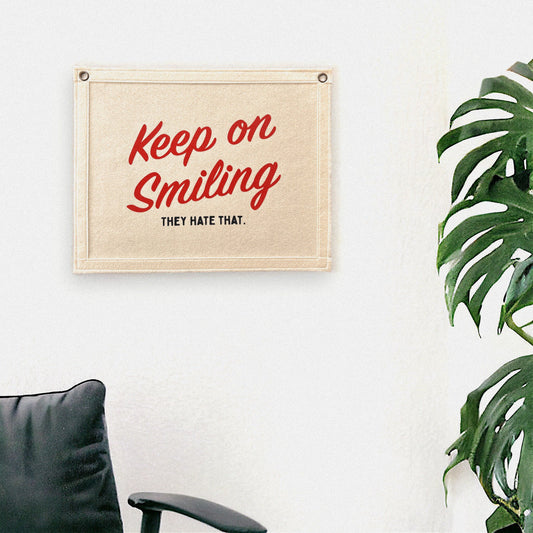 Keep on Smiling Banner | Felt Pennant Flag Banner | Vintage Banner | Wall Decor | Wall Hanging 16” x 20”