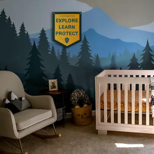 Junior Ranger Pledge 5-sided Banner | Explore Learn Protect | Felt Pennant Flag Banner | Vintage Banner | Wall Decor | Wall Hanging