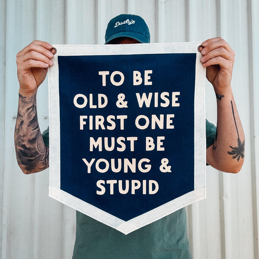 To be Old and Wise, first one must be Young and Stupid | Felt Pennant Flag Banner | Vintage Banner | Wall Decor | Wall Hanging